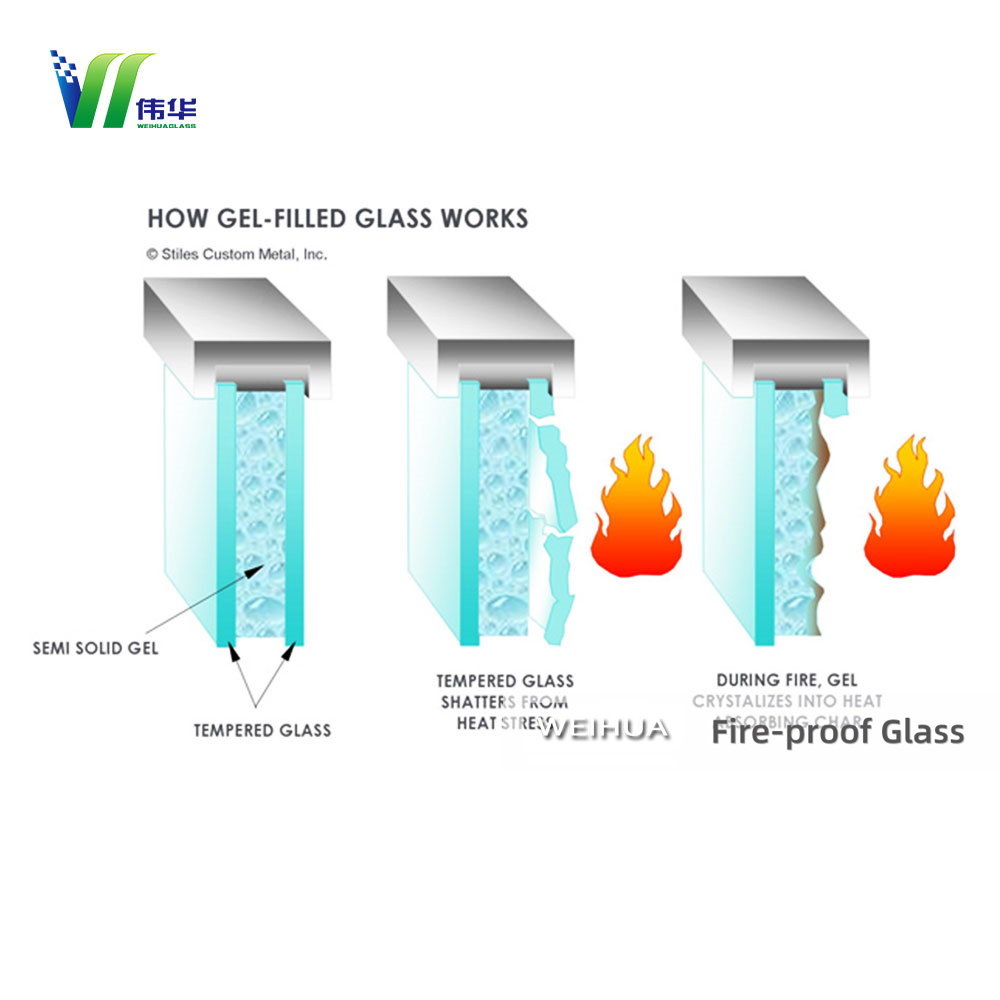 Multi-layer glass with intumescent interlayers (fireproof gel).