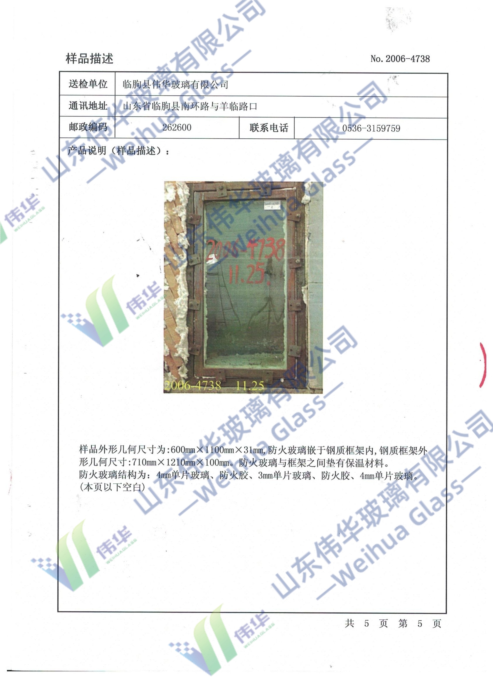 Monolithic Fire Glass (Class E - Integrity Only):